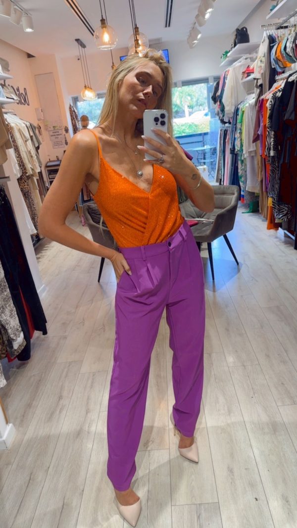 תיאור: בגד גוף מנצנץ, מחשוף וי מעטפת יושב בצורה מחמיאה על הגוף.
