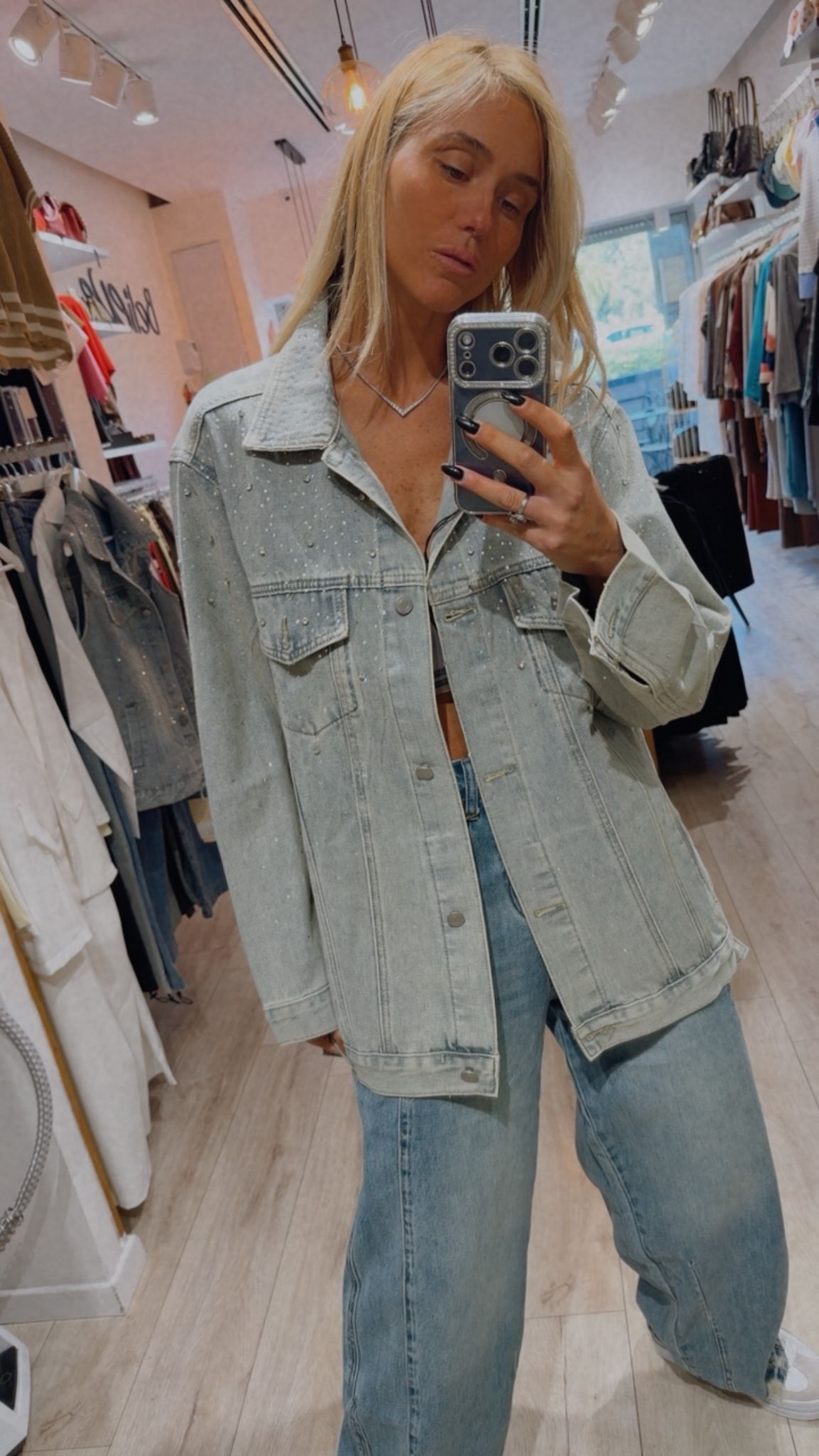 ג'קט גינס אובר סייז משובץ באבנים