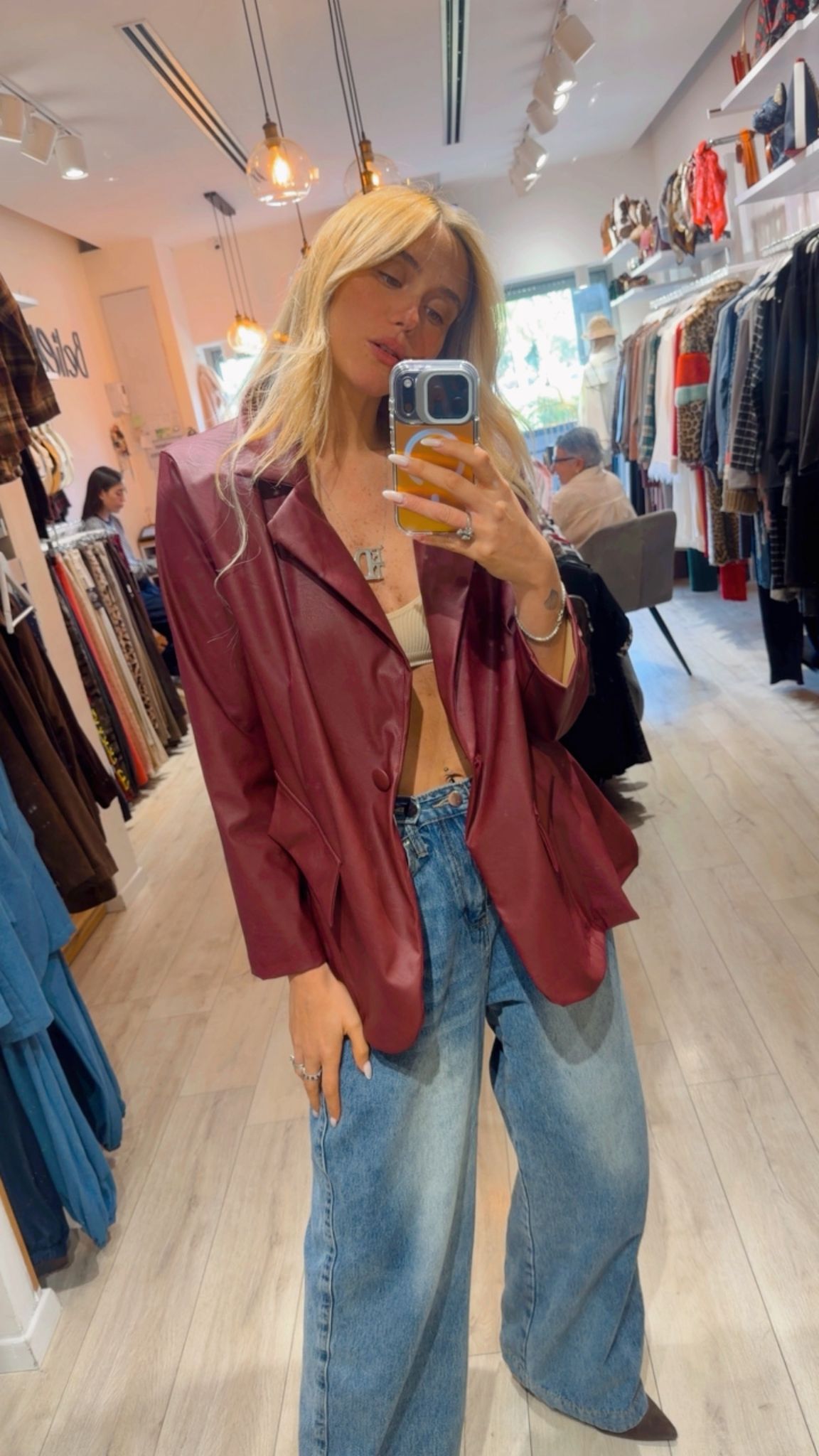 כמות של ג'קט דמוי עור עם פתח בגב