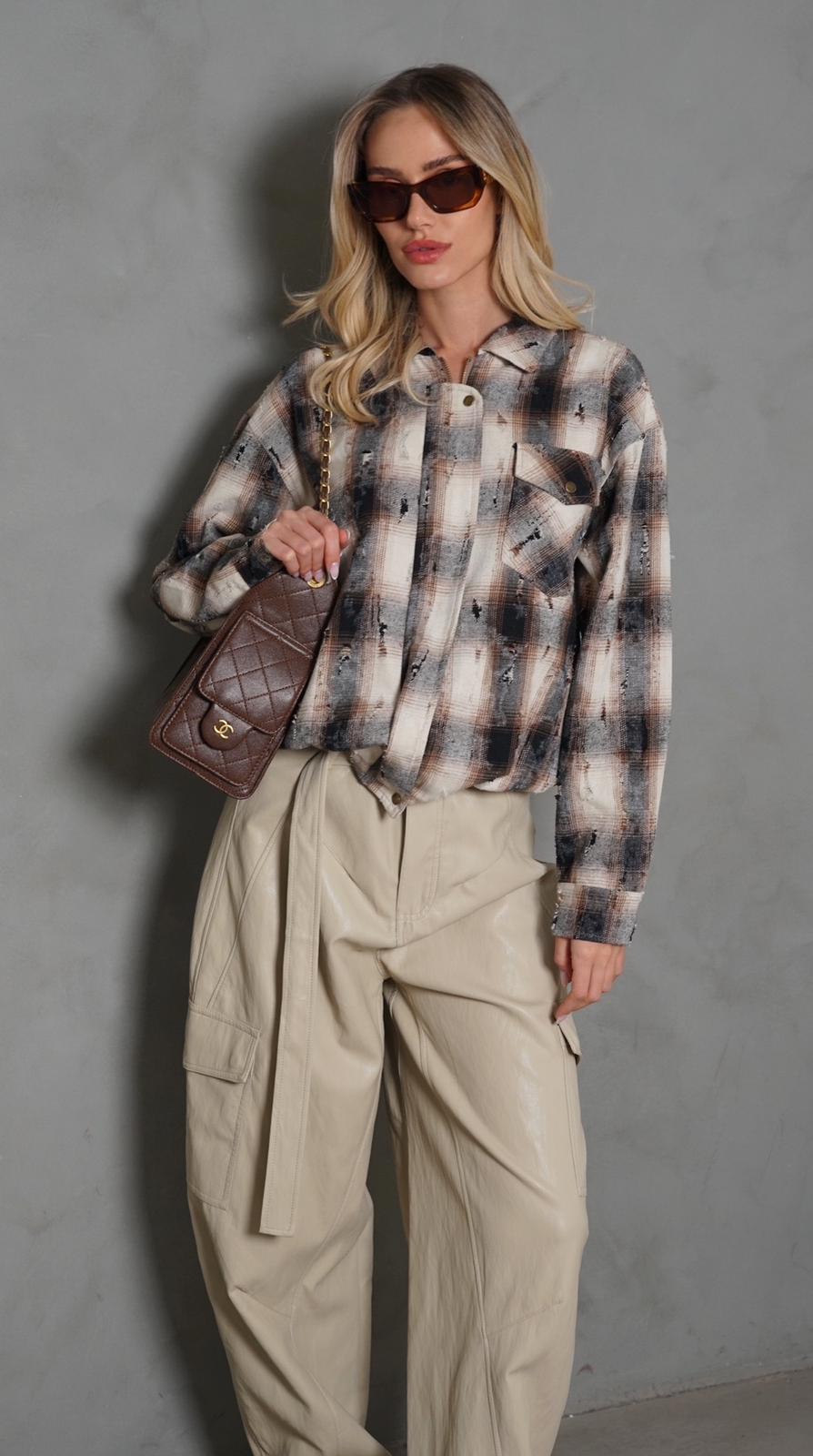 / ג'קט משבצות פייזלי FANCY – בז'