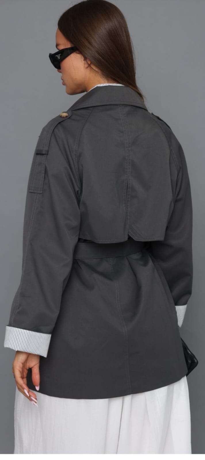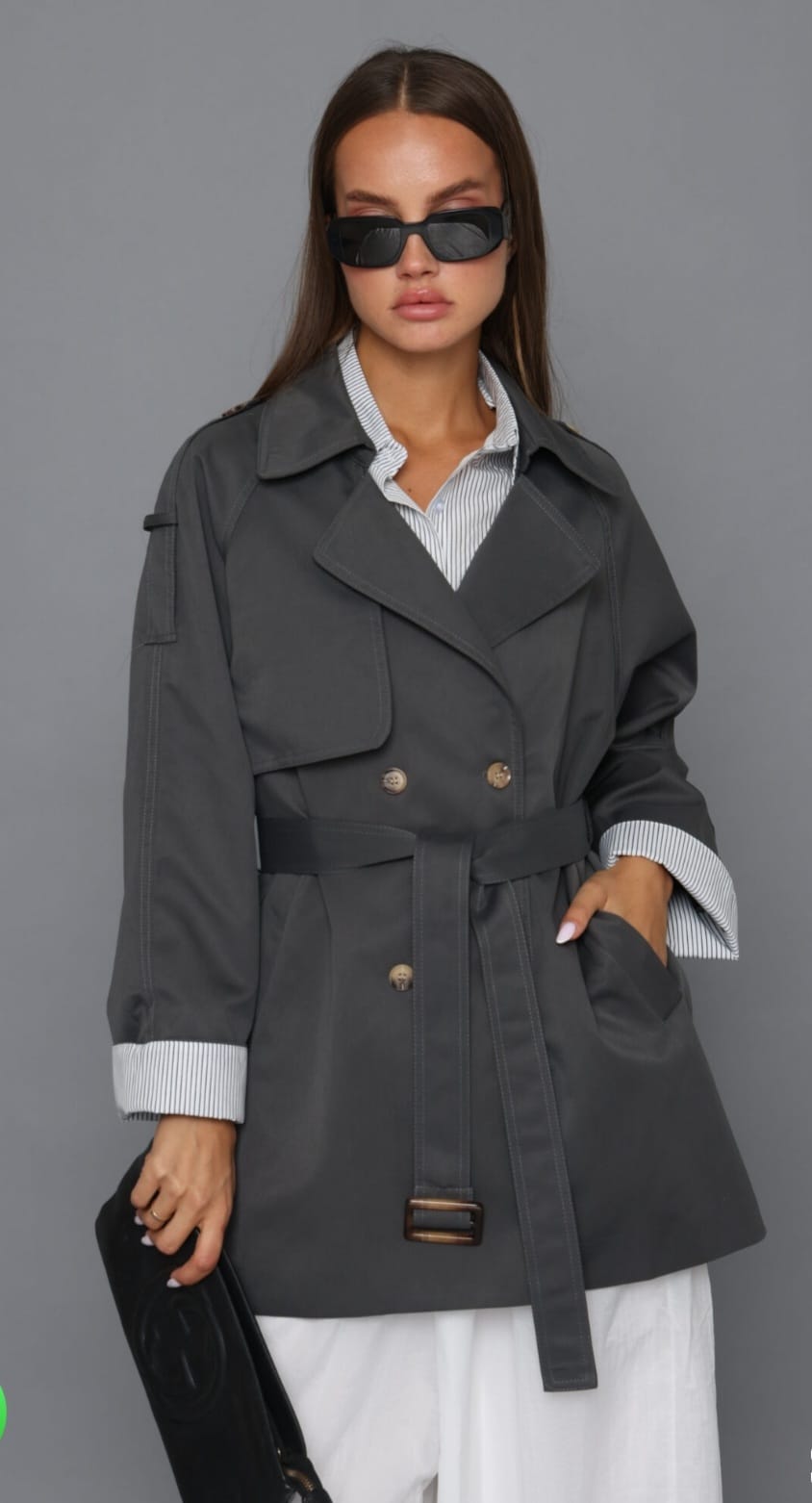 טרנץ' בשילוב חולצת פסים מחוברת סגירה עם כפתורים וחגורה במותן מידה : וואן סייז