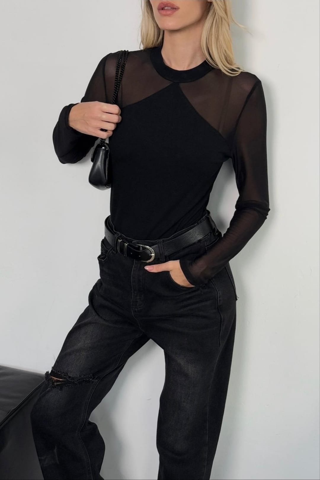 חולצה צמודה בשילוב שיפון מידה: וואן סייז