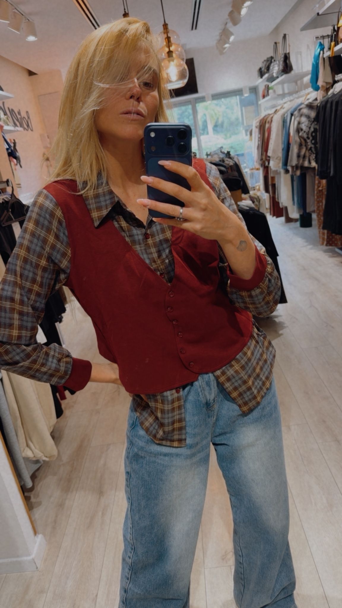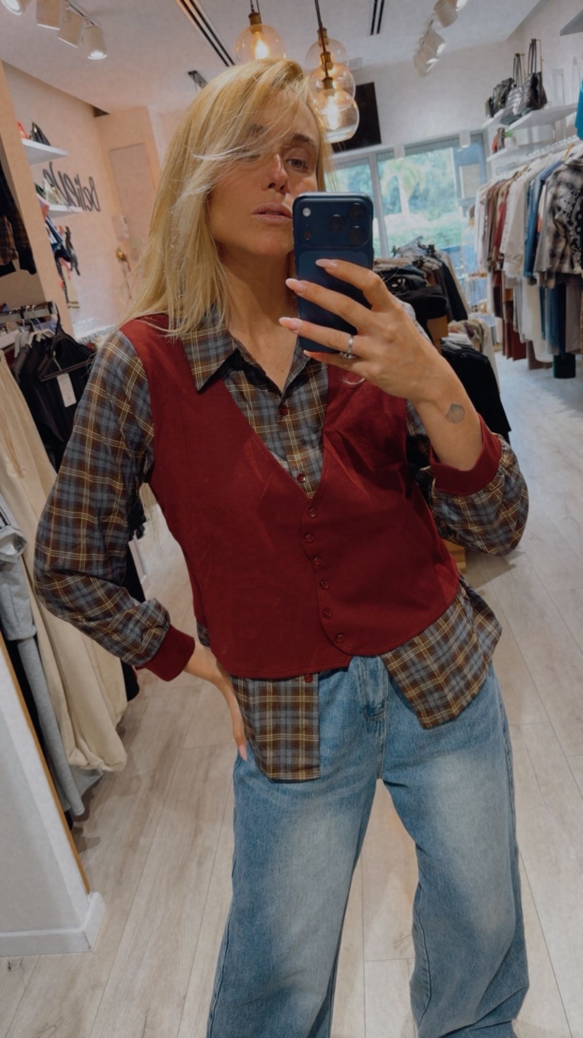 חולצה מכופתרת משבצות מחוברת אפודה מידה: וואן סייז
