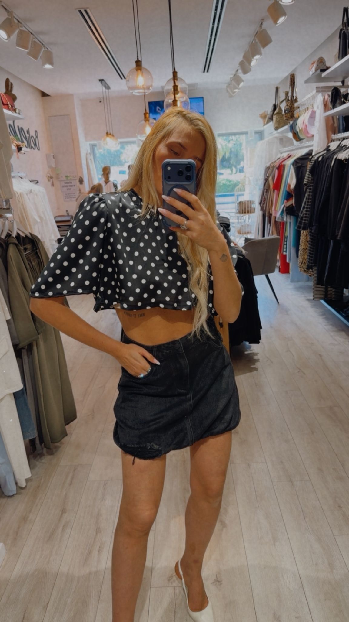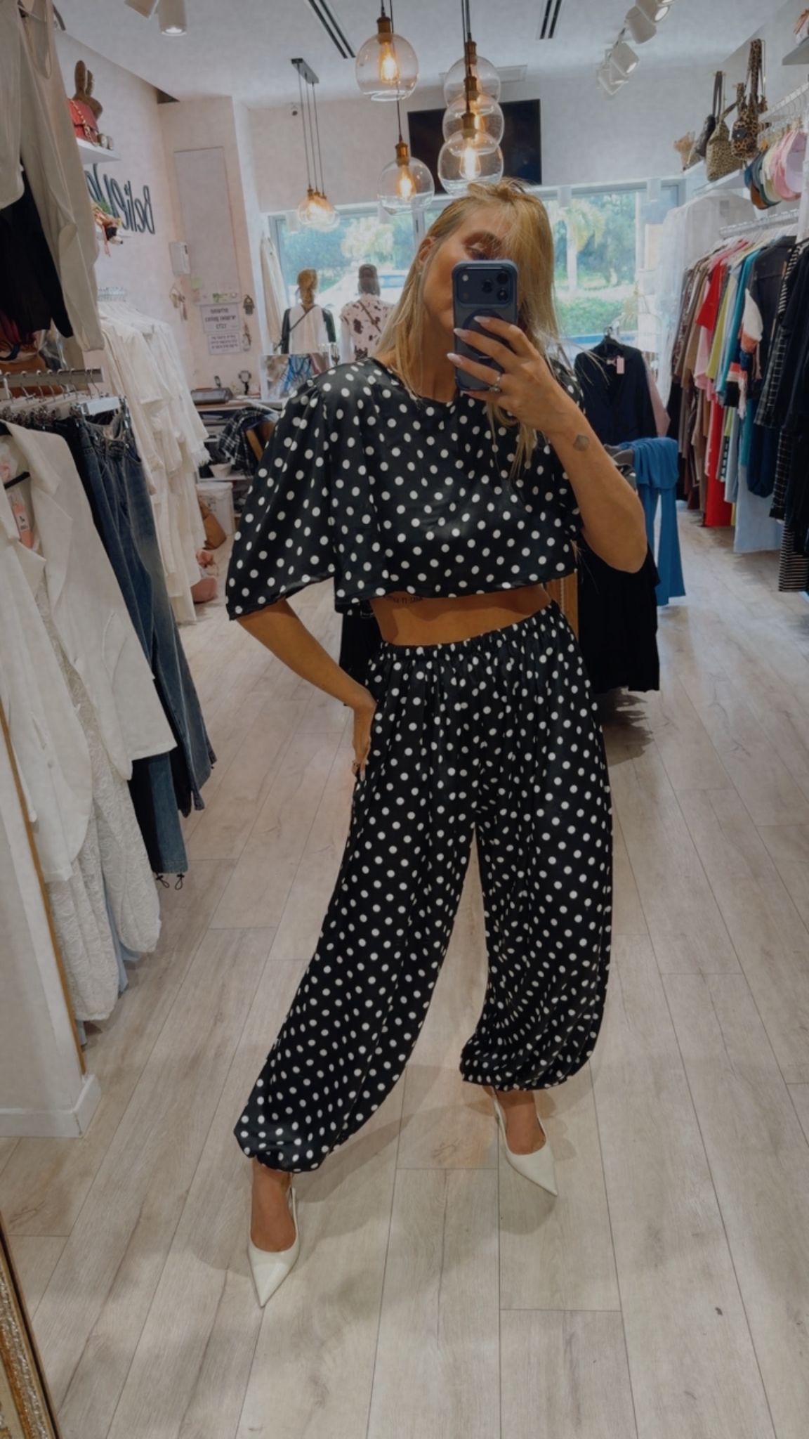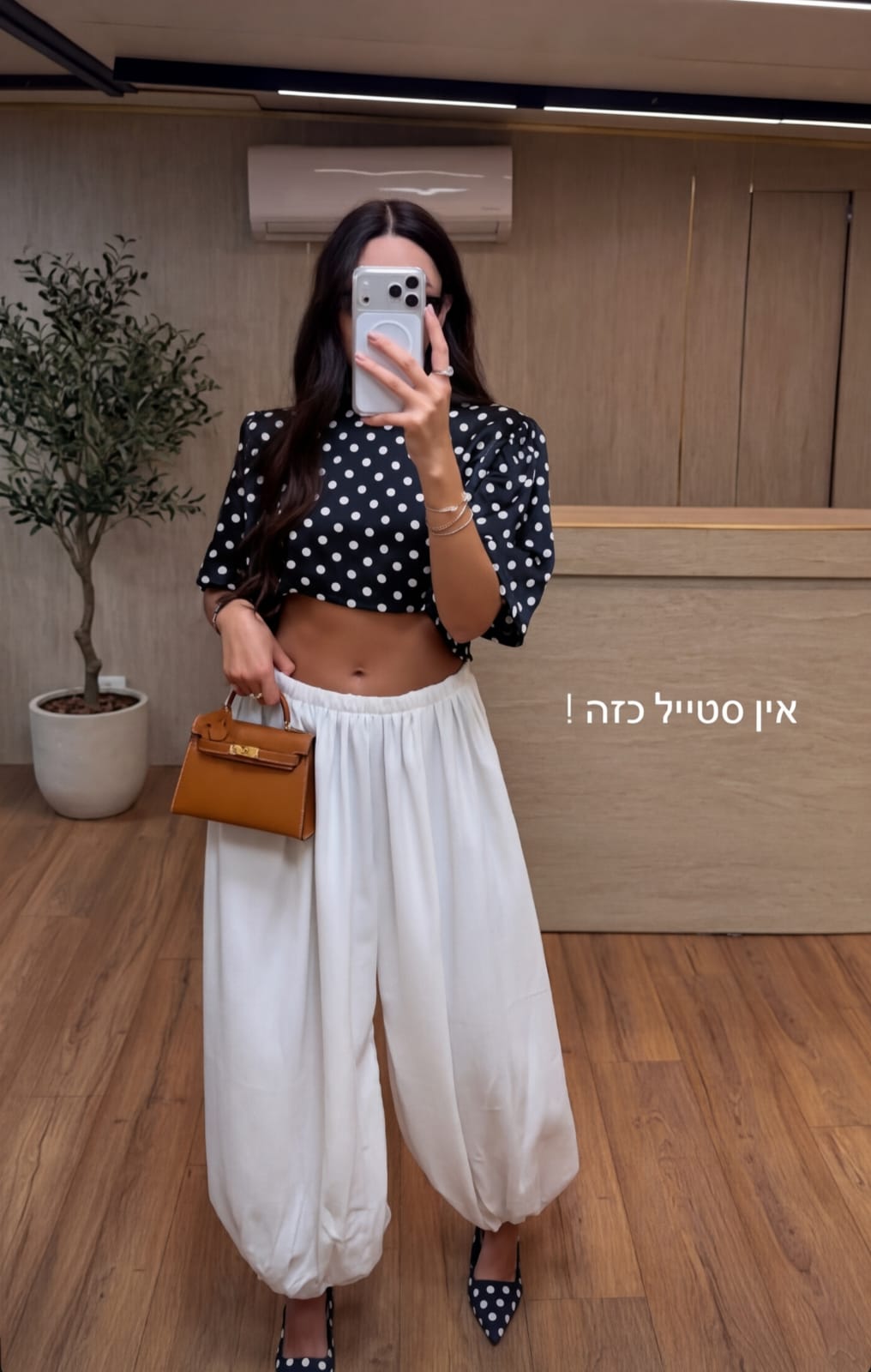 חולצת קרופ נקודות עם כריות בכתפיים מידה: וואן סייז