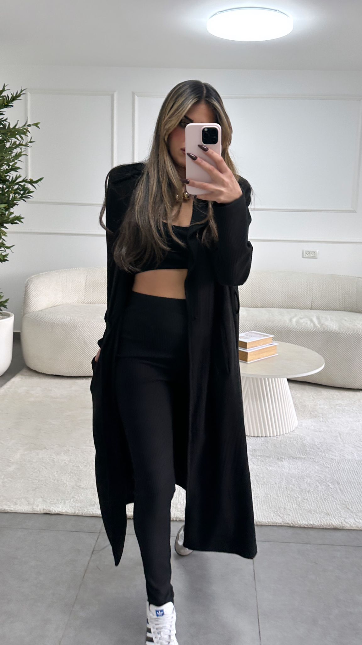 תיאור: חליפת שלושה חלקים. מידות: וואן סייז. צבעים: אבן, אפור כהה, חום ושחור.