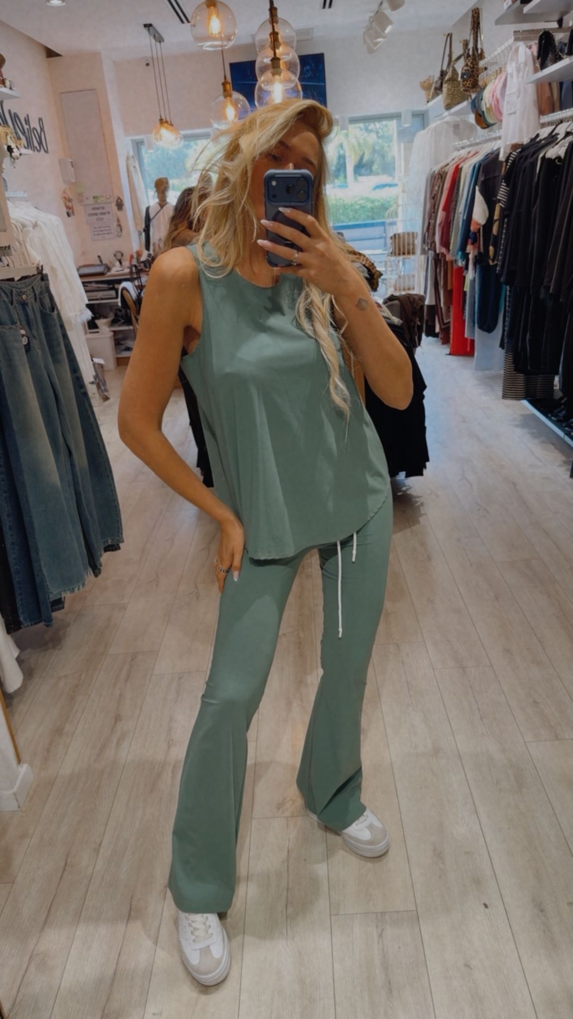 חליפת שני חלקים מבד צוללנים מחטב גופייה עם כתפיות רחבות מכנס צמוד קשירה עם שרוך מתרחב למטה מידה: וואן סייז