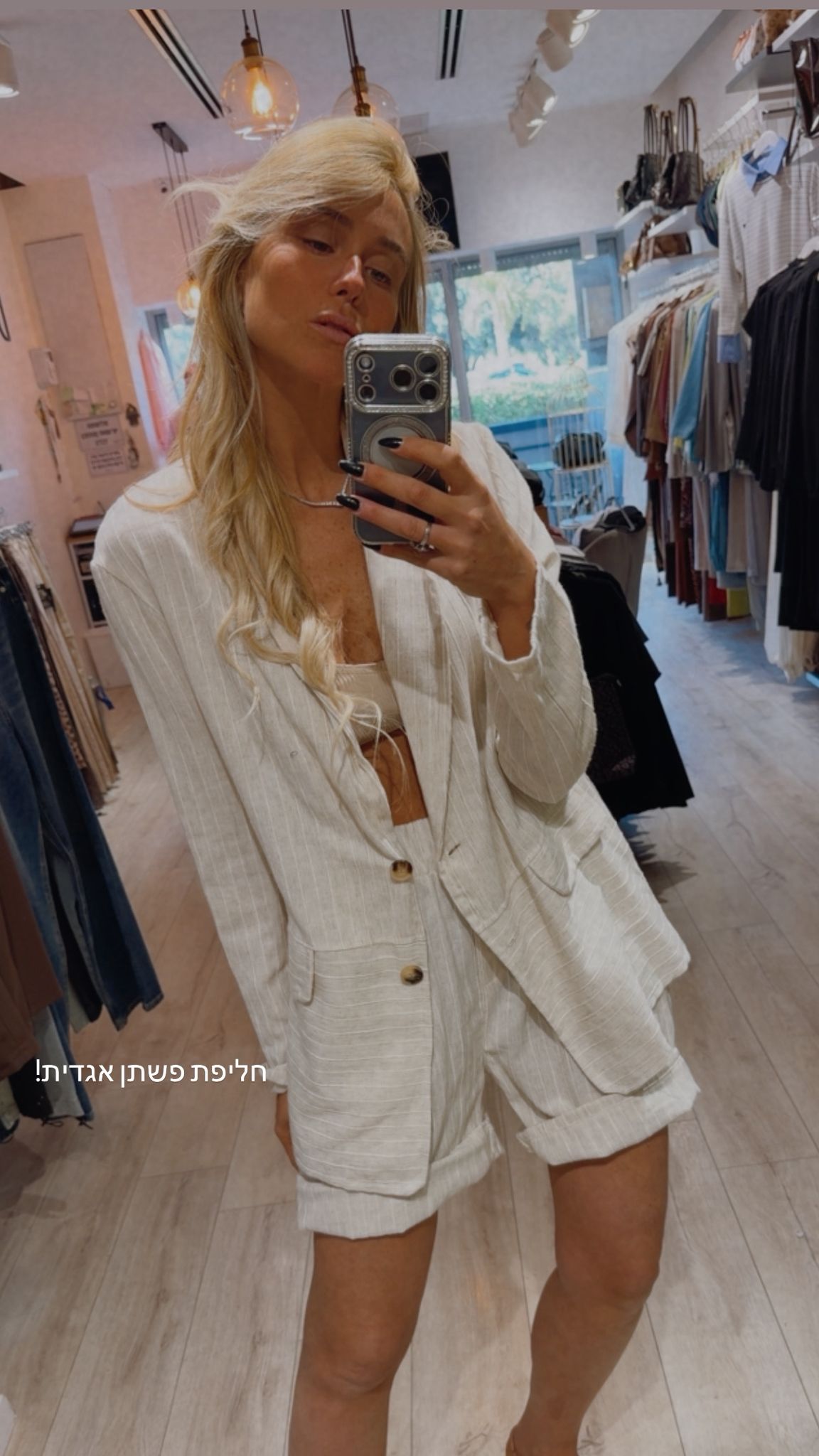 חליפת פשטן 2 חלקים מכנס קצר עד הברך גקט שרוול ארוך מידה: וואן סייז