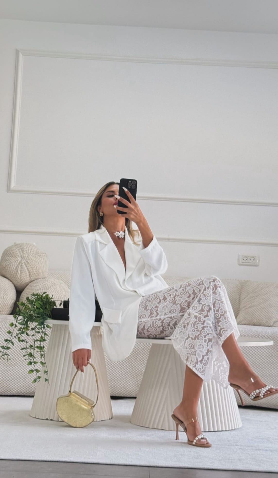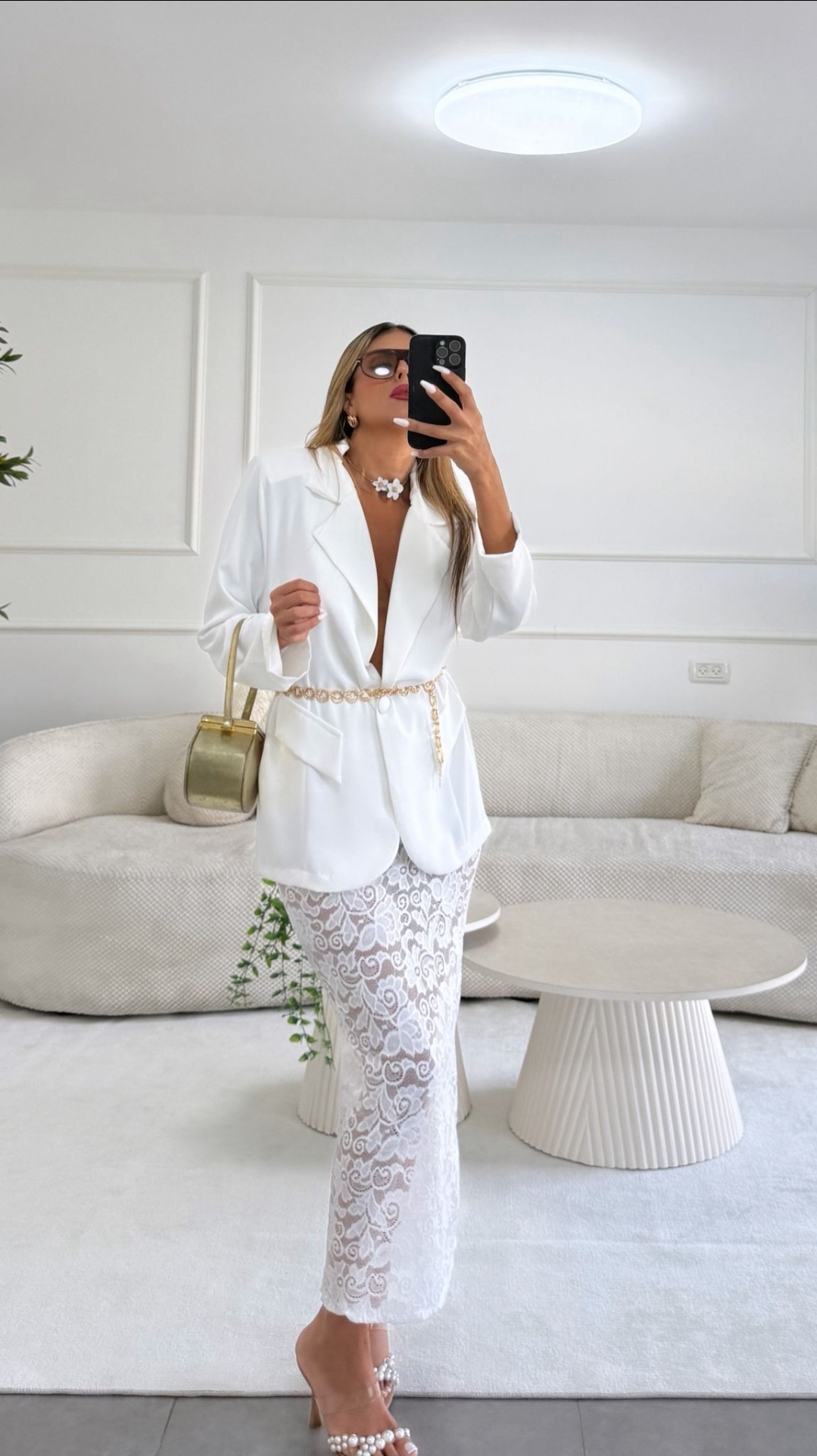 חליפת שני חלקים בלייזר אוברסייז חצאית מידי תחרה (ללא ביטנה) עם גומי במותן מידה: וואן סייז