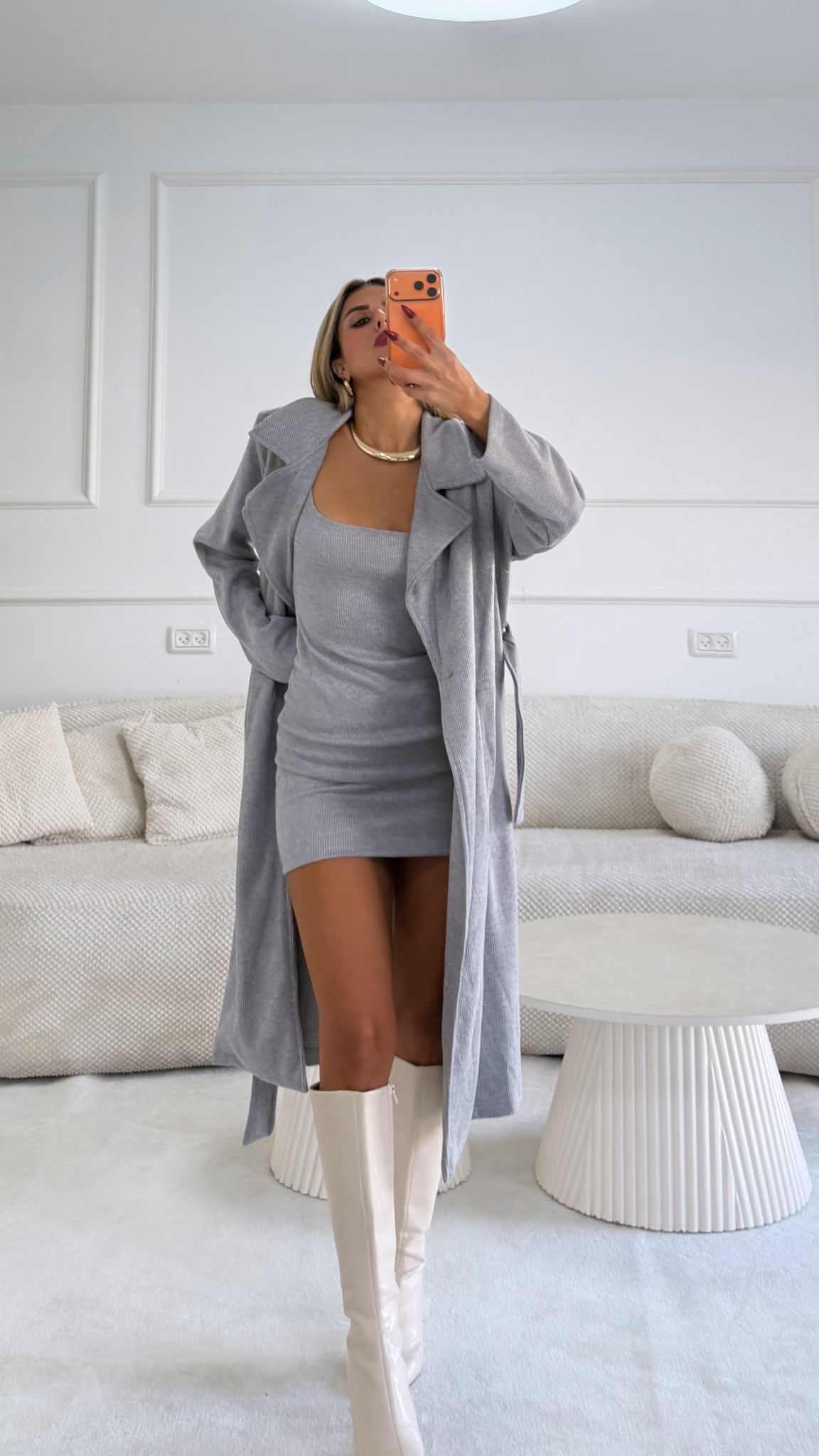 כמות של סט שמלה+ג'קט ארוך - אפור