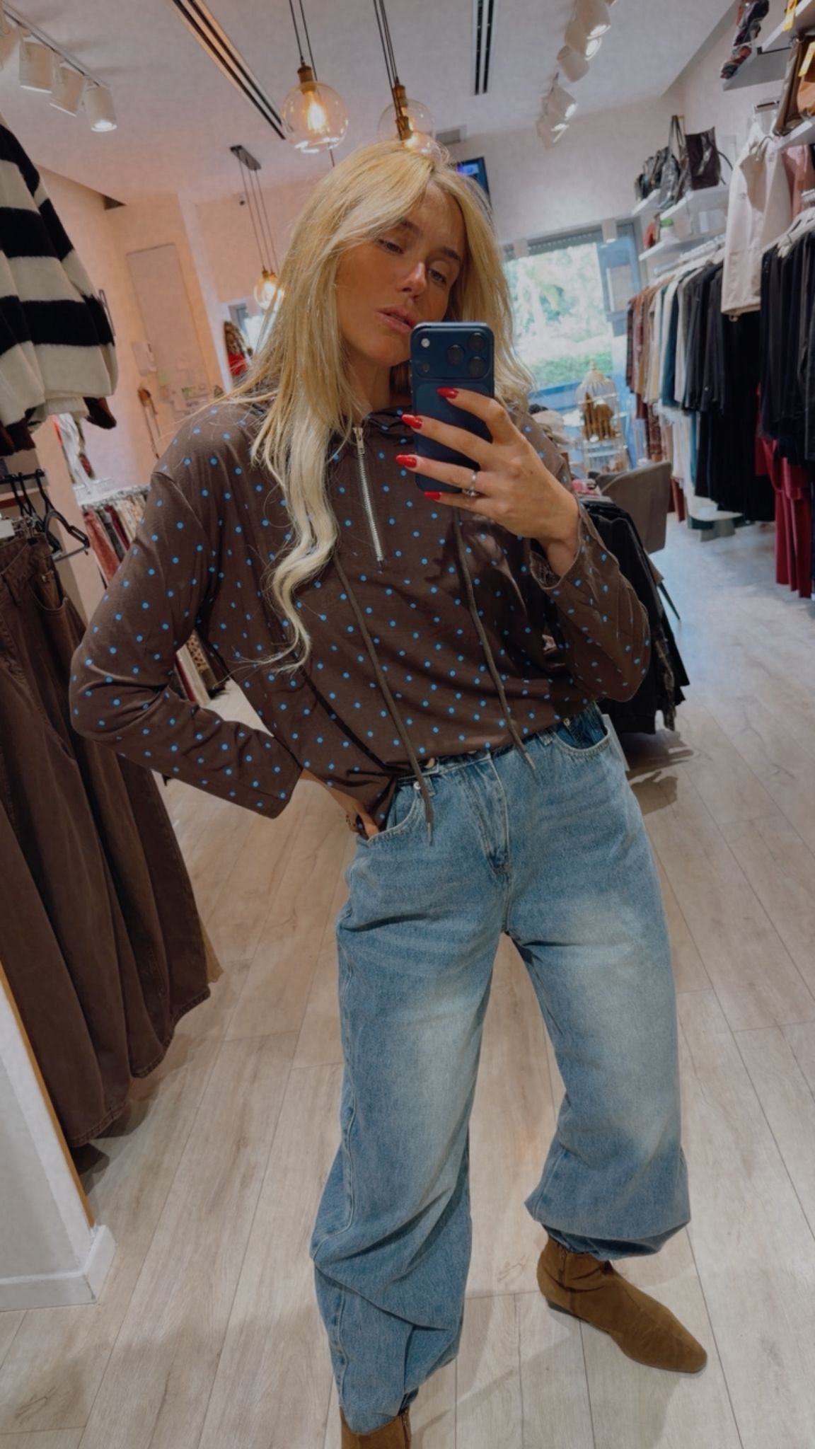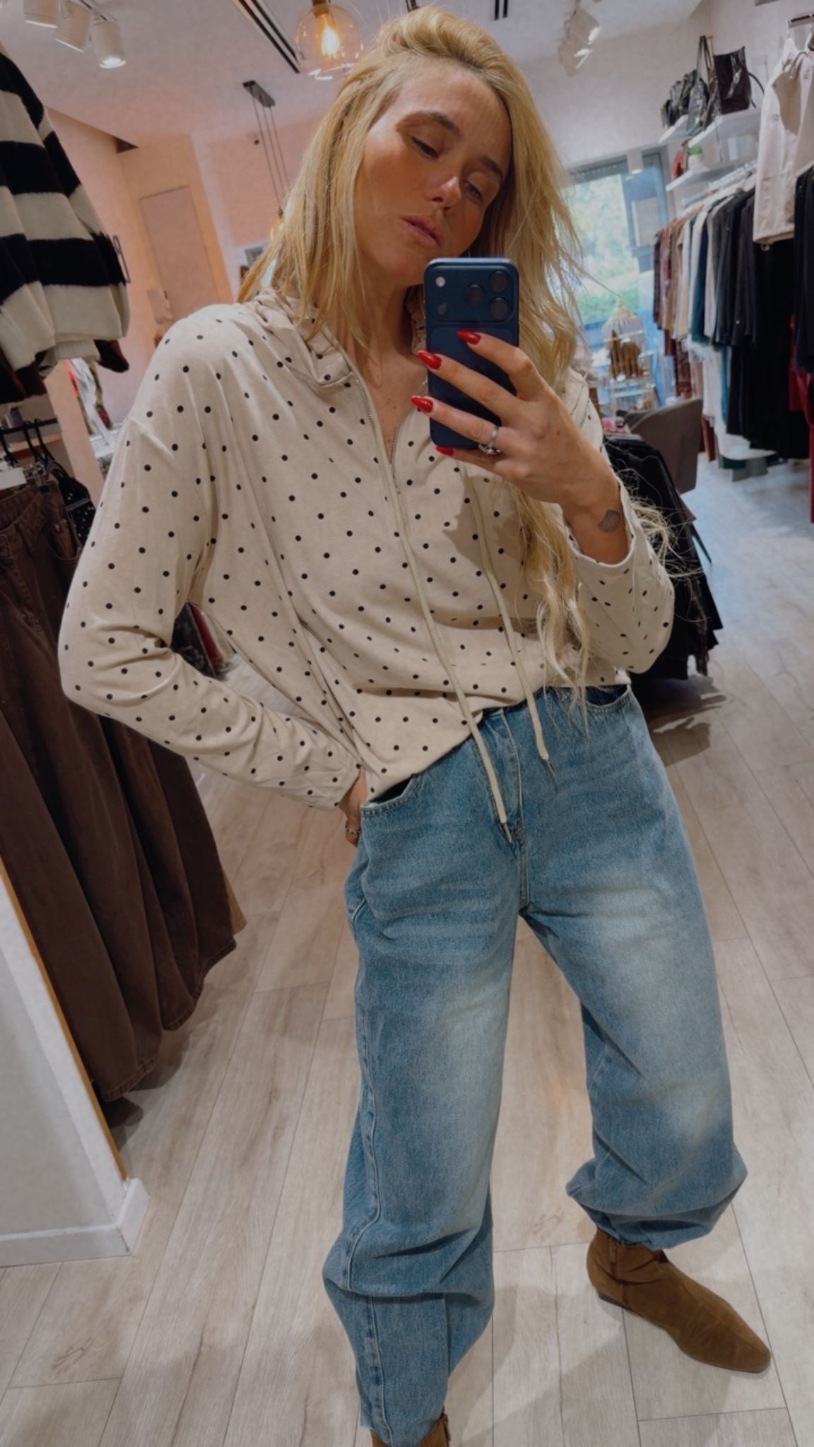 קפוצ'ון נקודות דק עם מפתח רוכסן