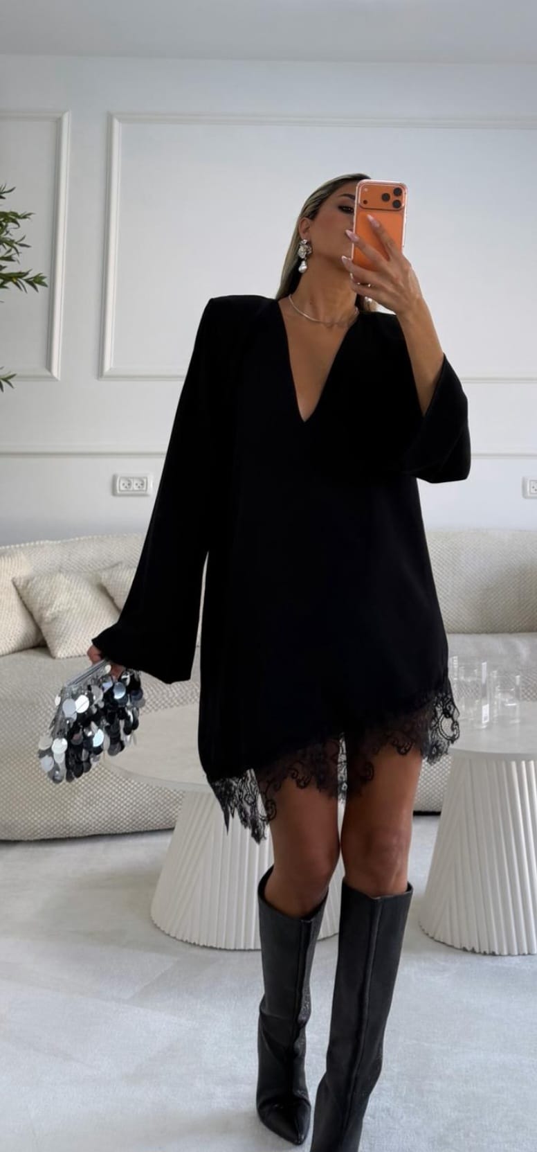 שמלה אלגנטית ונשית עם סיומת תחרה