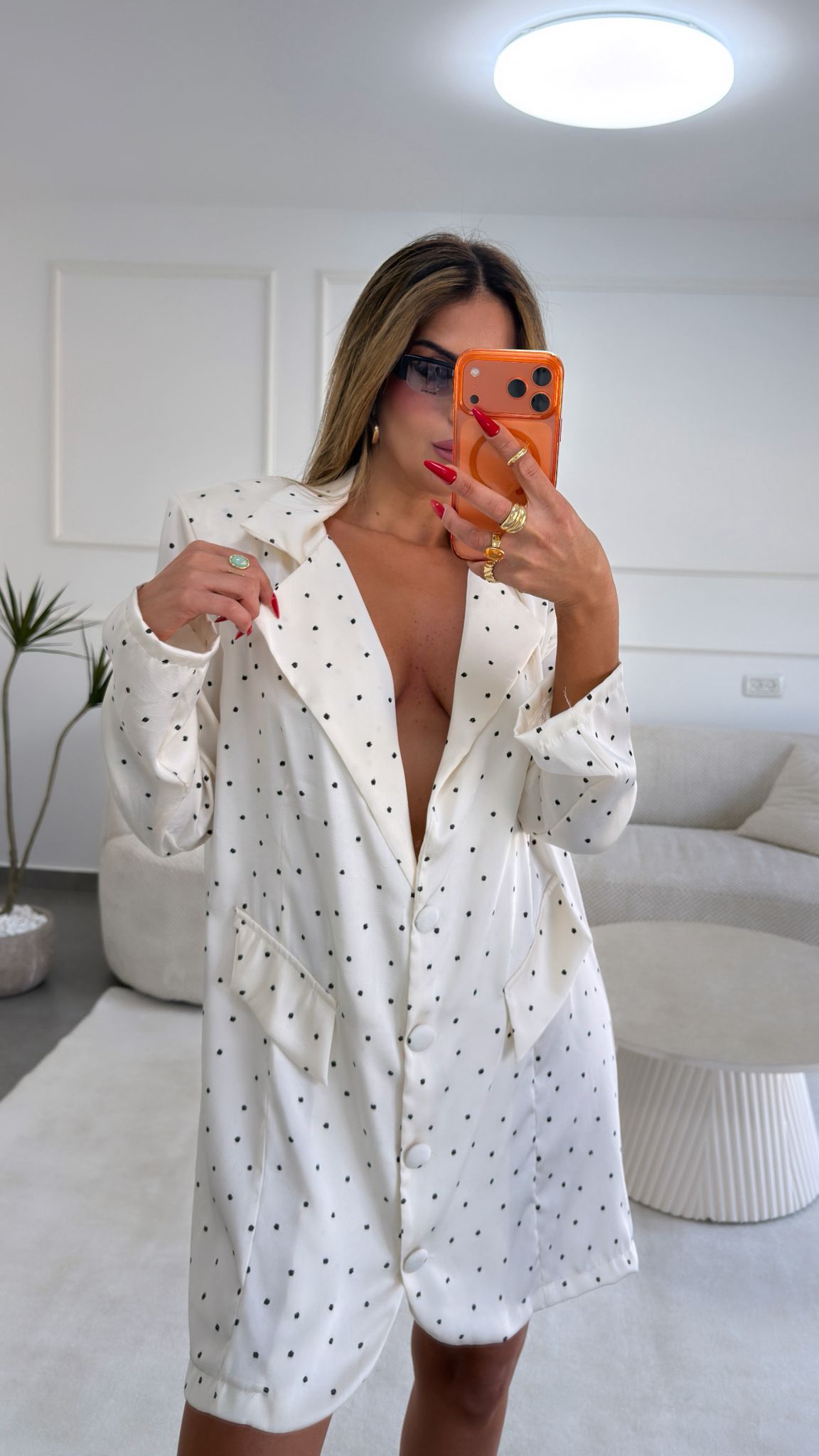 שמלה ג'קט בגזרת אוברסייז ישרה עם כריות בכתפיים ניתן ללבוש כשמלה או כבלייזר סגירת 4 כפתורים מידה: וואן סייז