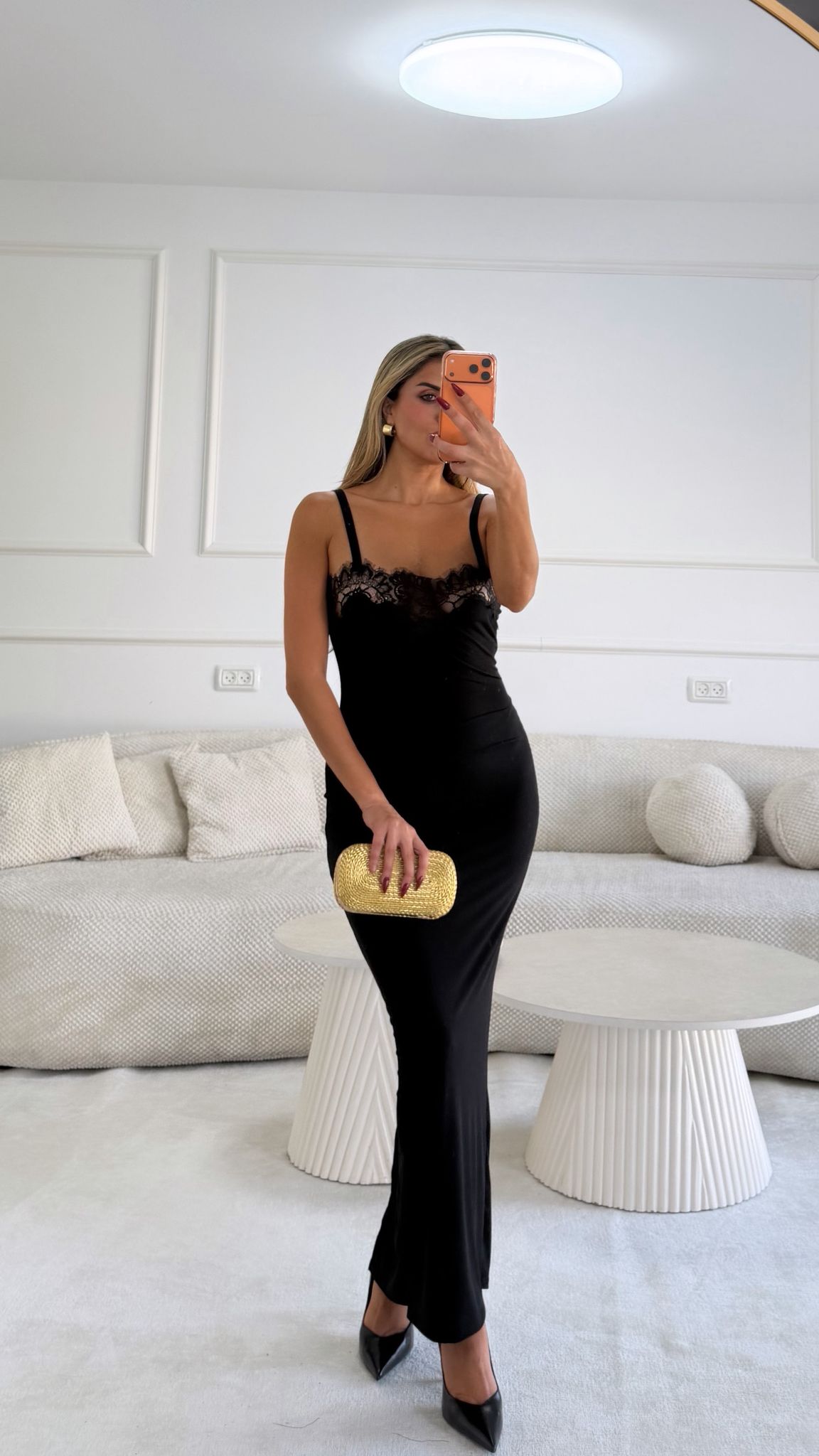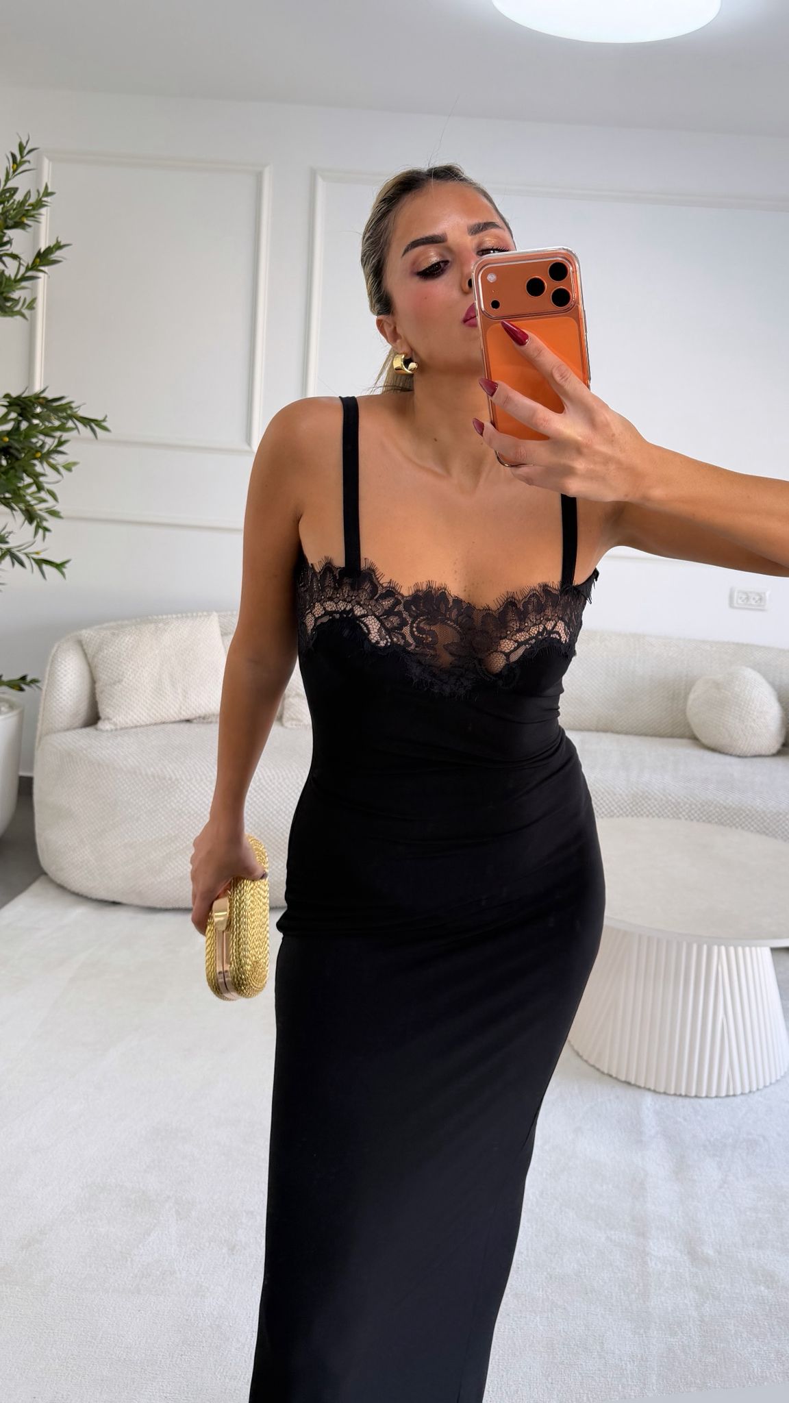 שמלת ערב מקסי מבד לייקרה עבה ומחטב מידה: וואן סייז